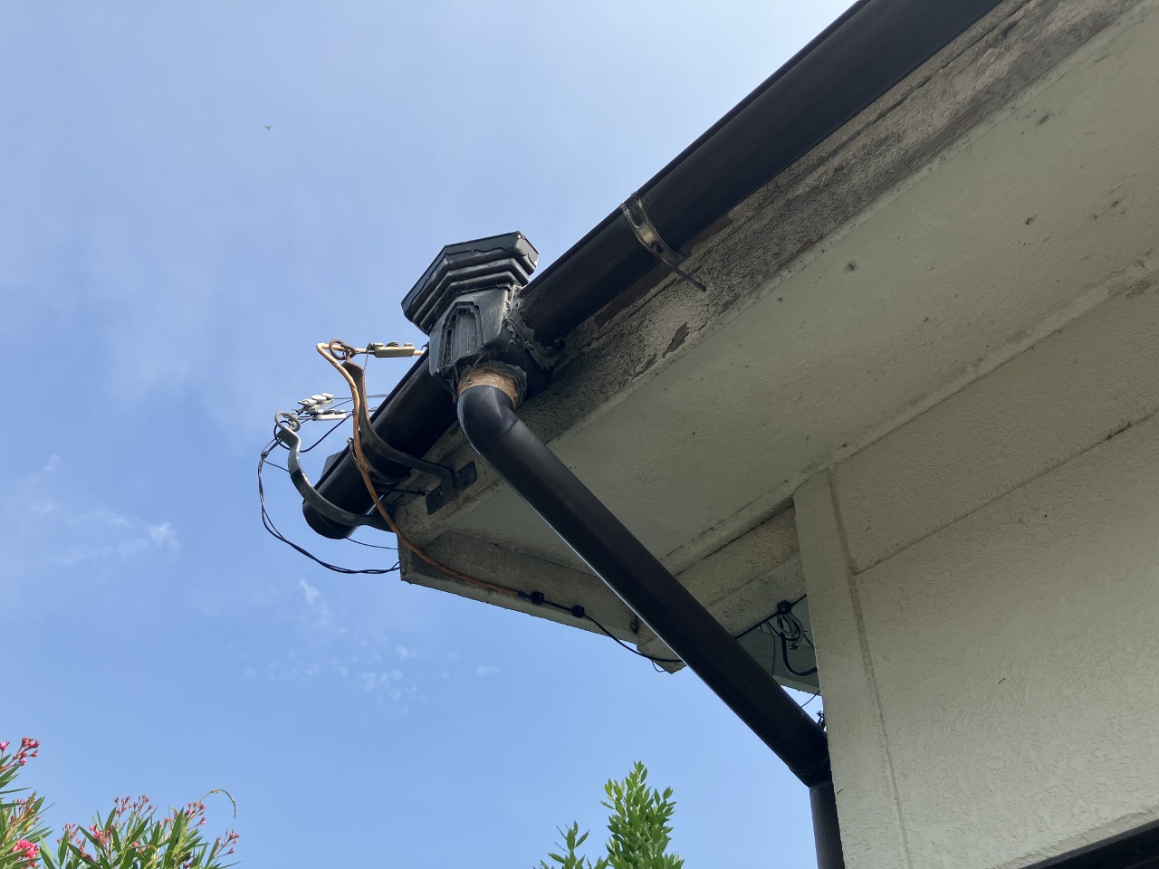 屋根に降った雨水を地面へと流すパイプです。