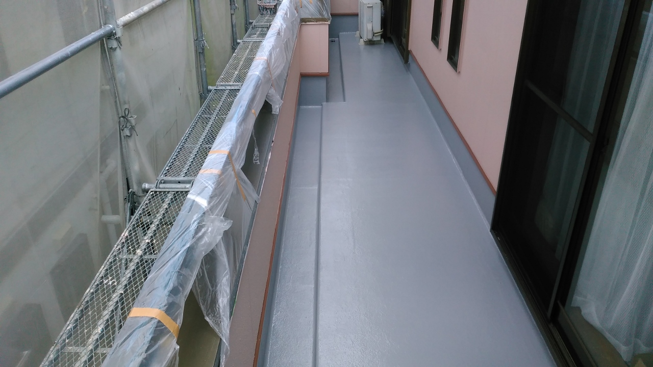 この日は、ベランダ床の施工です。 経年劣化したベランダも、塗りかえることができます。 広報担当:寺澤