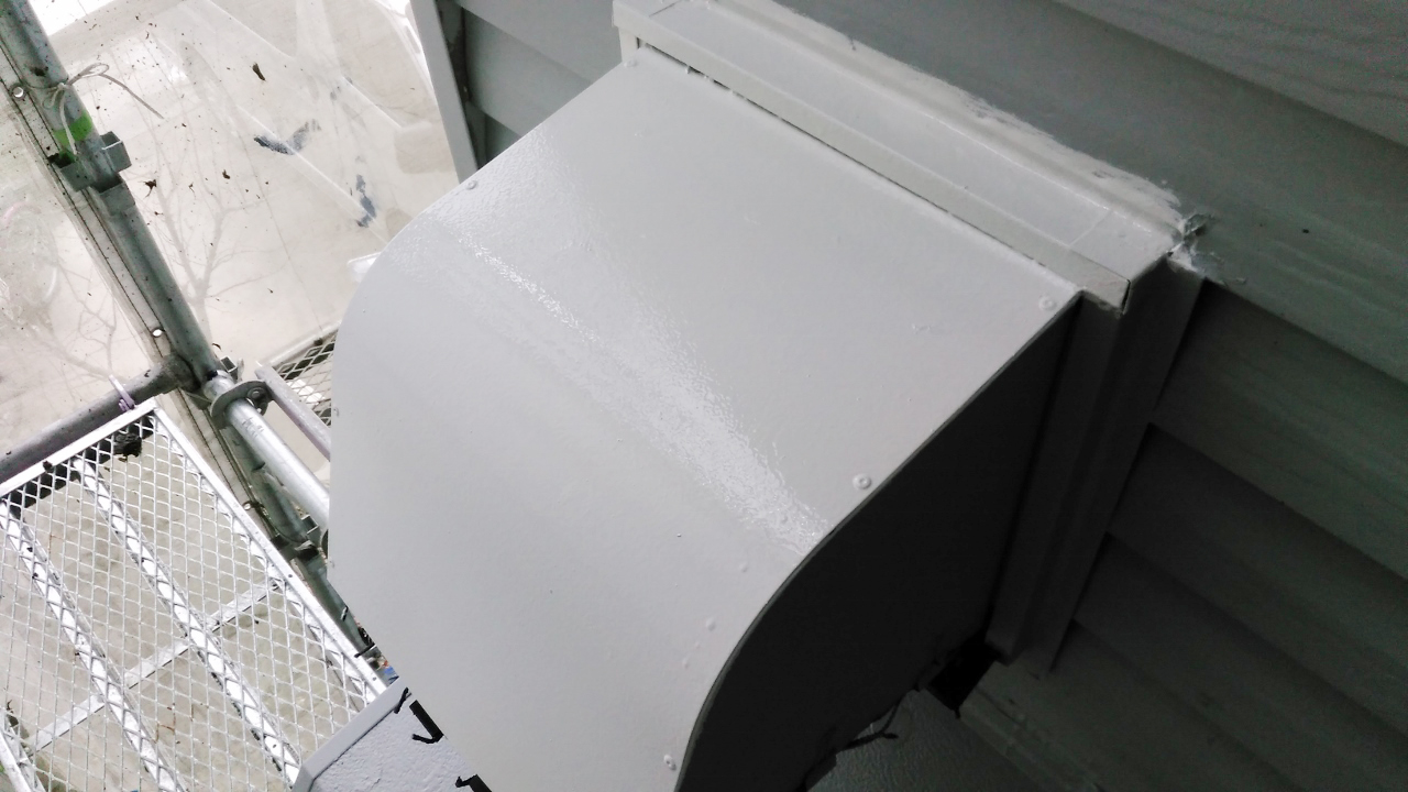 外壁だけでなく、換気扇などのフード部分も、丁寧に仕上げていきます。