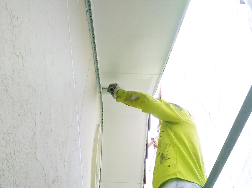 岐阜県・大垣市にて 軒天塗装 外壁で家を見上げたときに、結構目に入る場所ですね。