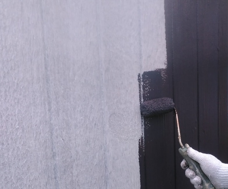 昨日、下塗りした外壁に、今日は一度目の上塗りをしていきます。