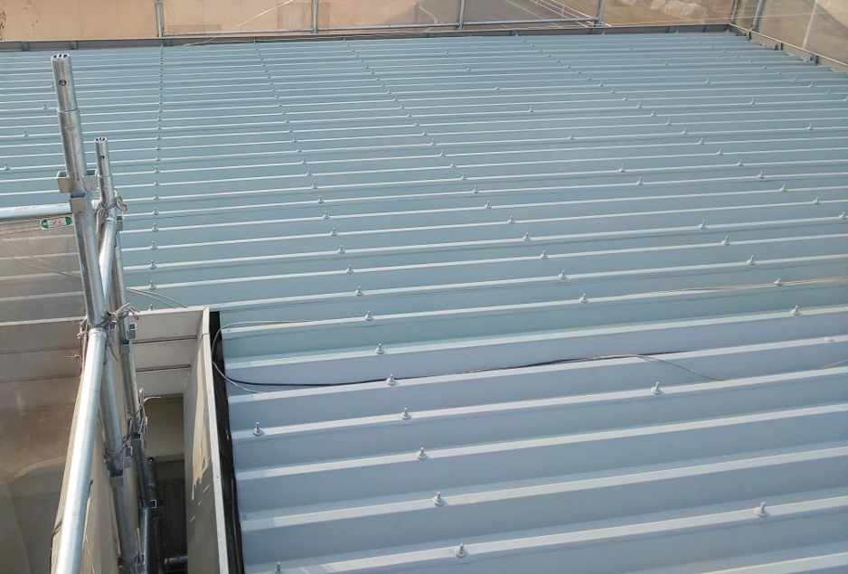 このタイプの屋根はビスが多いので、ビス周りも丁寧に、塗り残しが無いように塗っていきます。