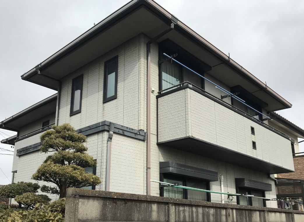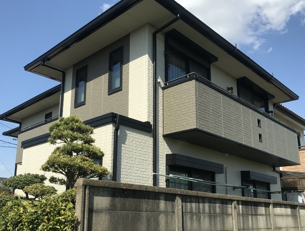 元々の外壁の色と、大きく色味は変えていませんが、玄関上のベランダと外壁の一部をアクセントとして色を変えました。