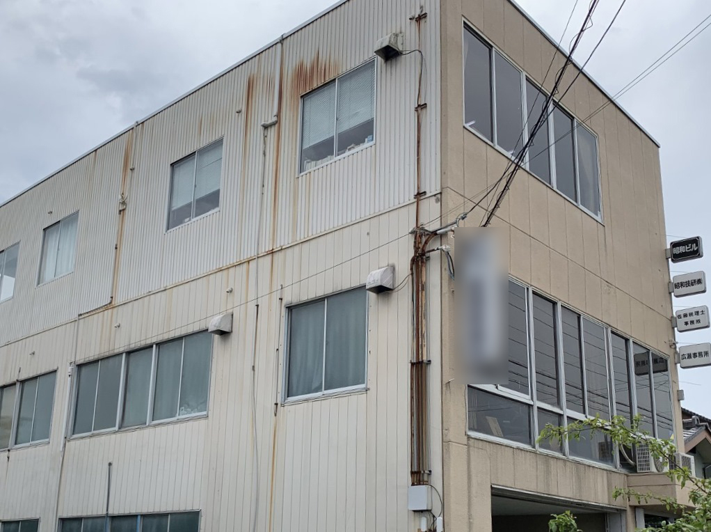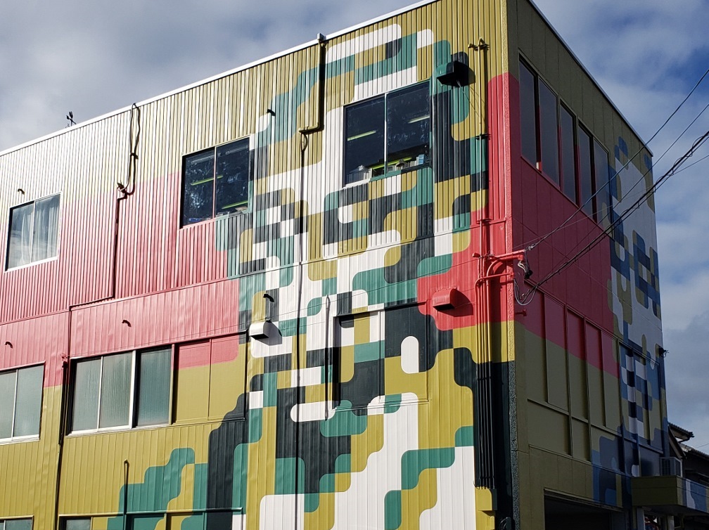 岐阜県 大垣市 ビル・工場 昭和ビル 外壁塗装 7色に塗り分けて、モザイク画を表現しました。多色