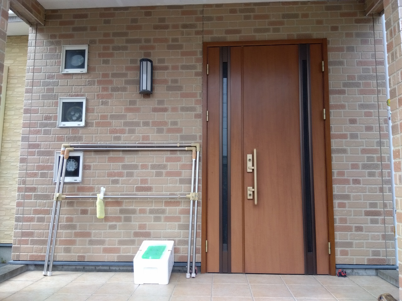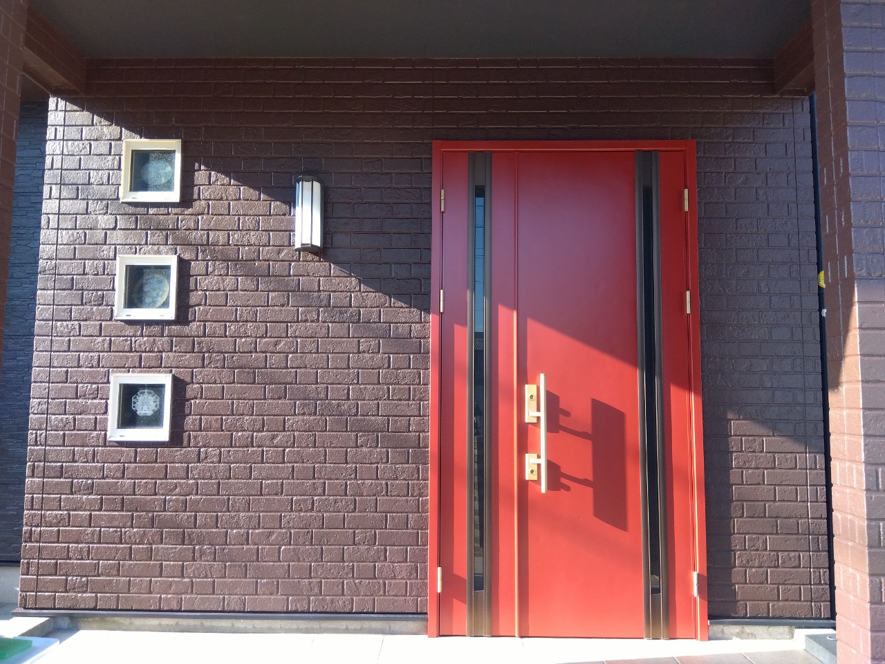 色褪せが気になっていた玄関ドアも塗装し、赤色が差し色となり全体の雰囲気をまとめています。