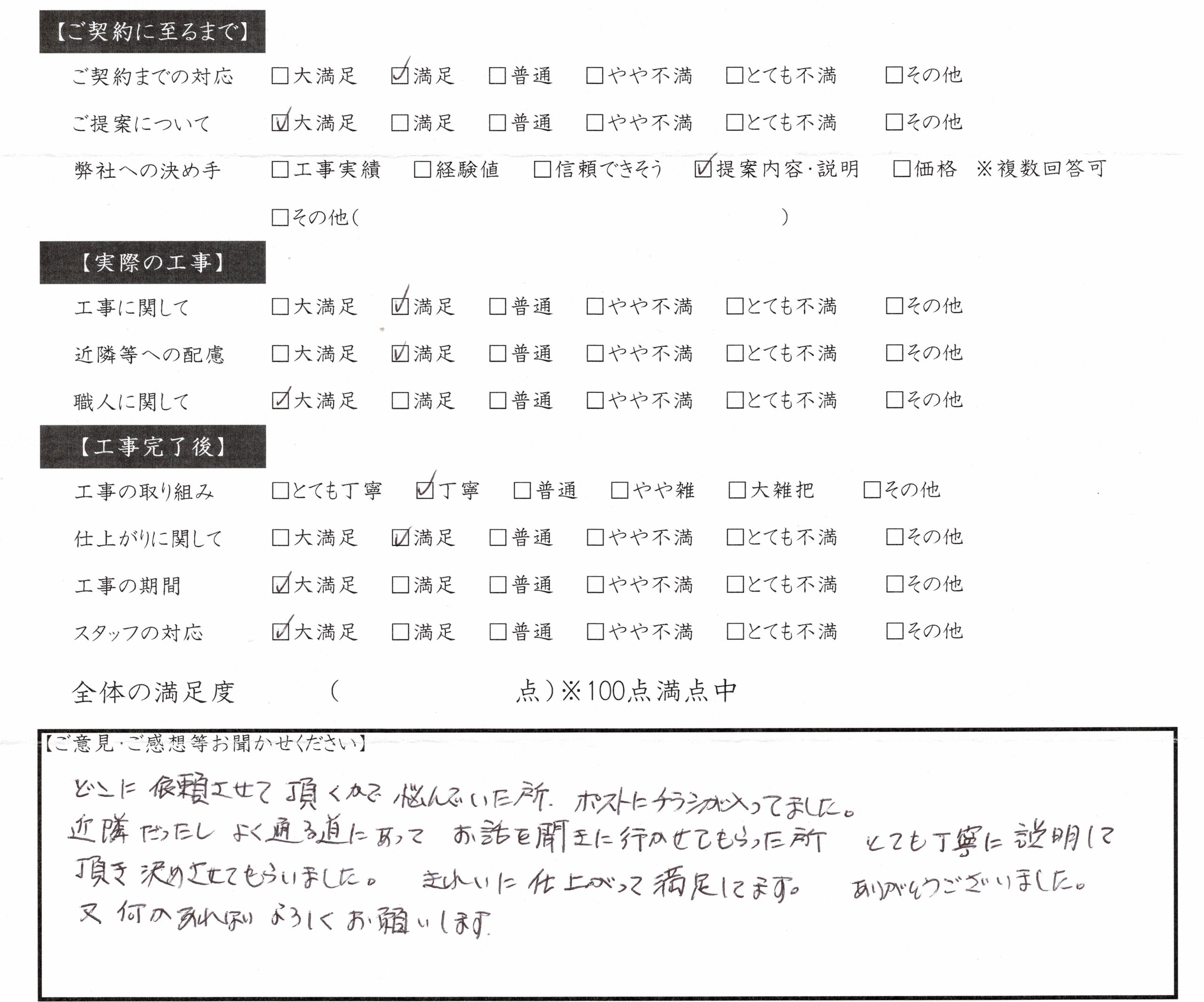 近隣だったし、よく通る道にあってお話を聞きに行かせてもらった所とても丁寧に説明して頂き決めさせてもらいました。きれいに仕上がって満足してます。