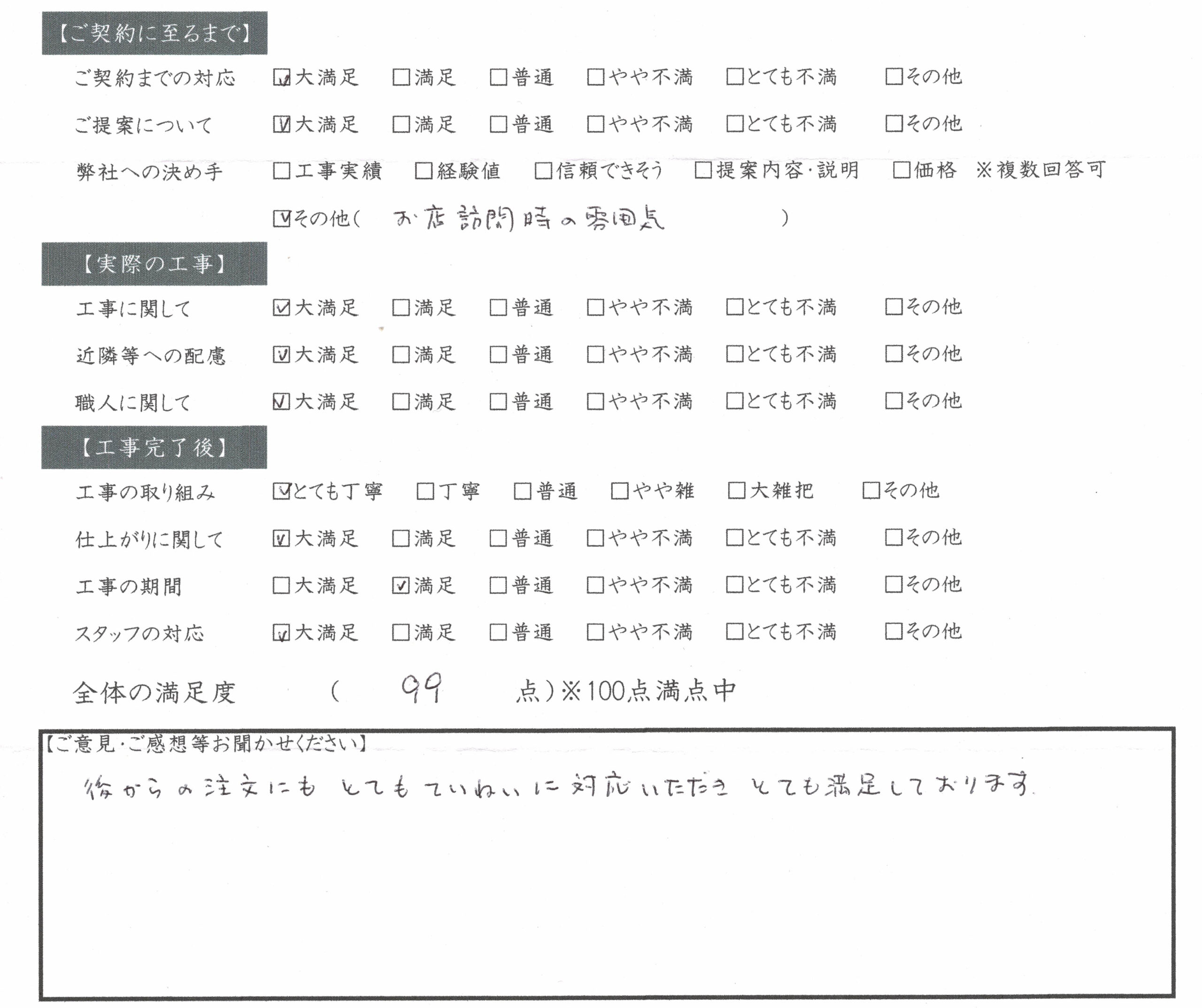 後からの注文にもとても丁寧に対応いただきとても満足しています。 大垣市 B様