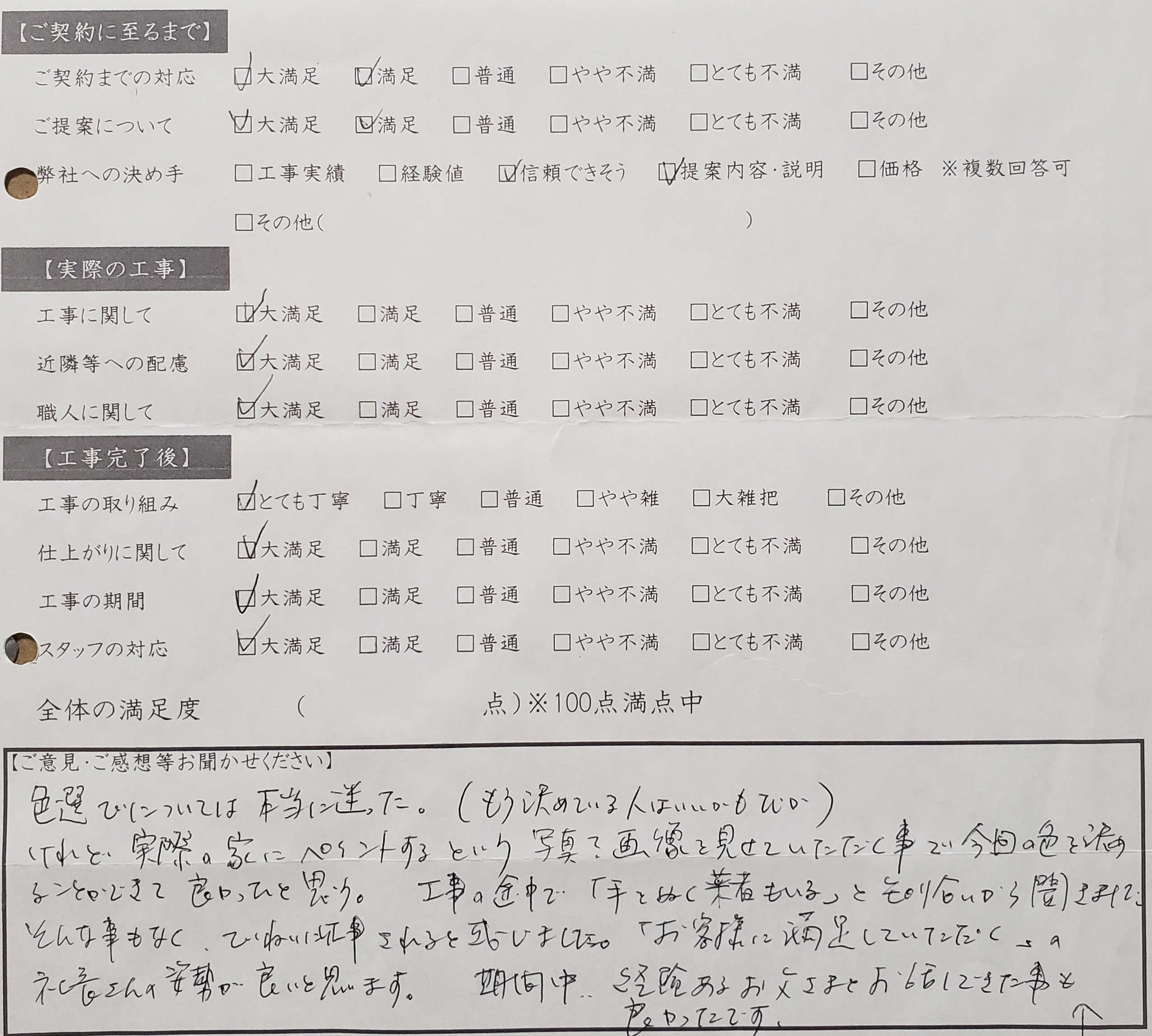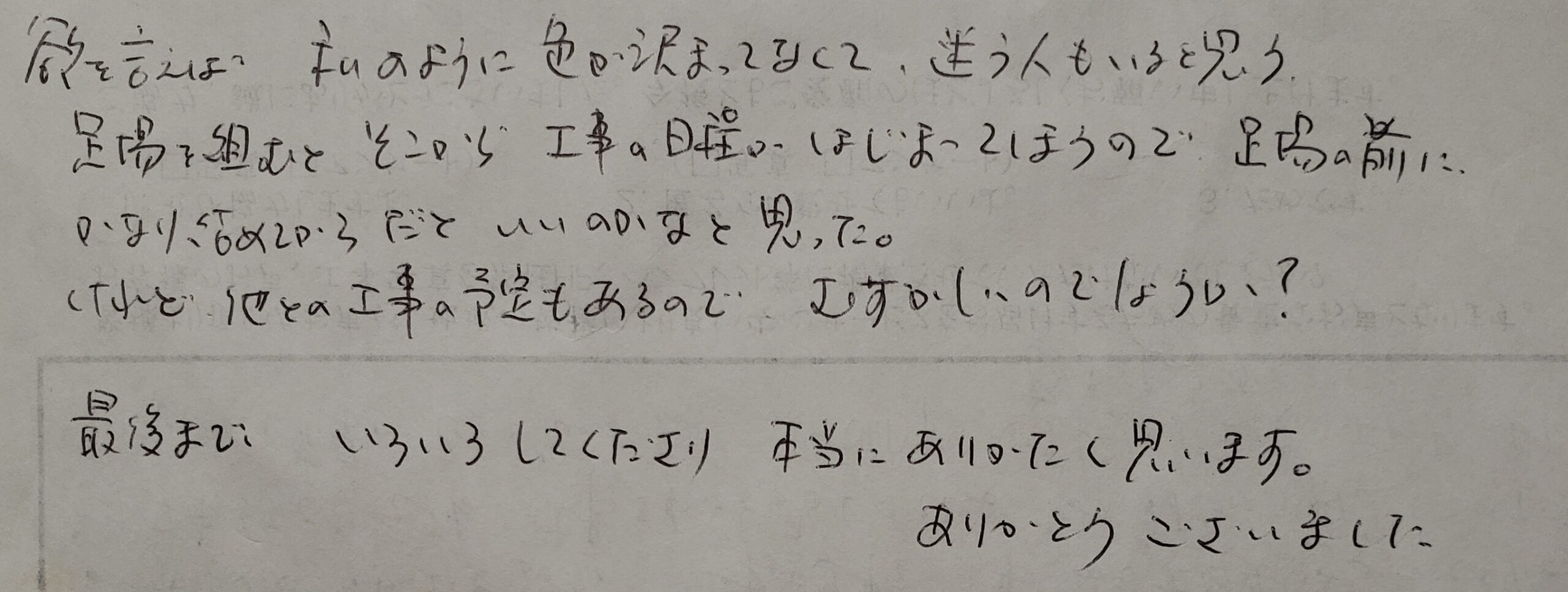 工事の途中で、「手を抜く業者もいる」と知り合いから聞きました。そんな事もなく、ていねいに仕事されると感じました。