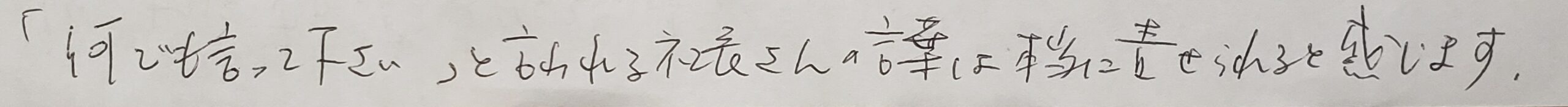 「何でも言って下さい」と言われる社長さんの言葉は本当にまかせられると感じます。