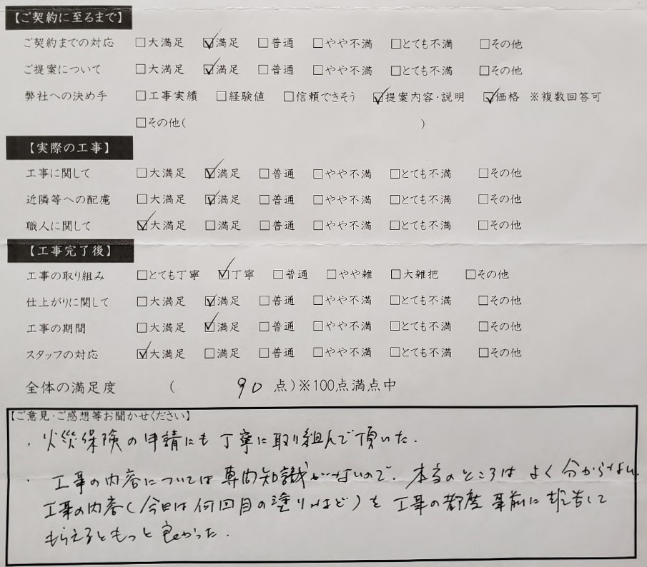 火災保険の申請にも丁寧に取り組んで頂いた。