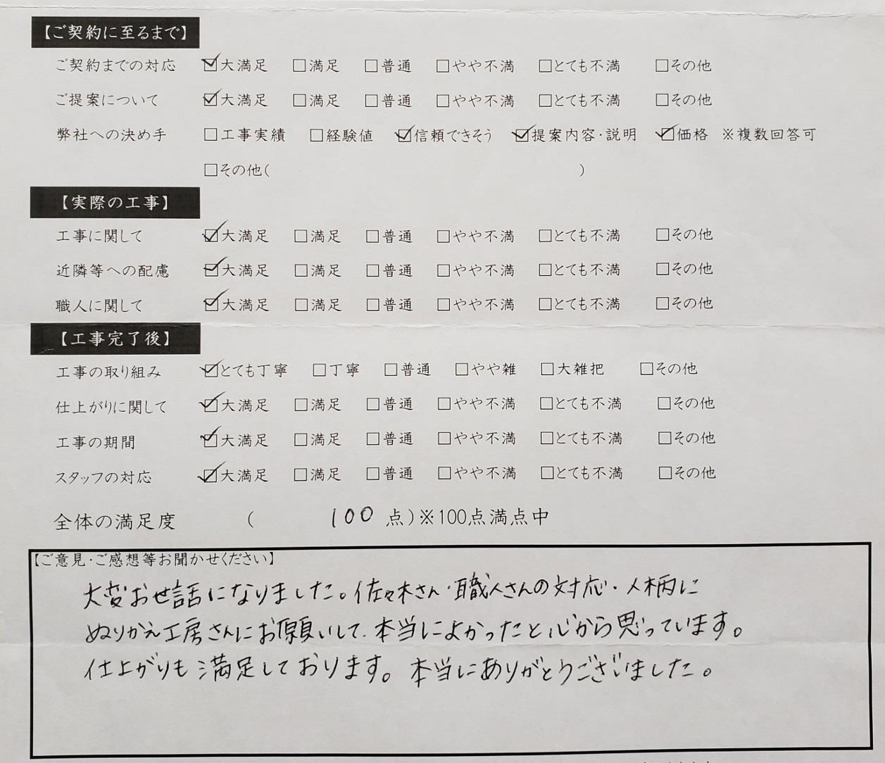 佐々木さん・職人さんの対応・人柄に、塗りかえ工房さんにお願いして、本当によかったと心から思っています。