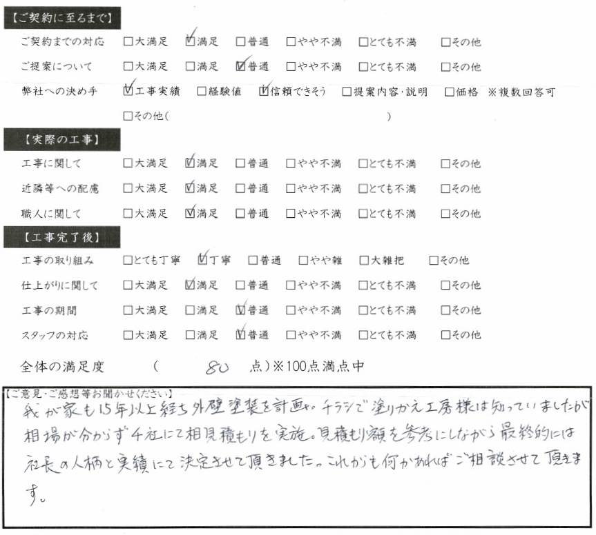見積もり額を参考にしながら、最終的には社長の人柄と実績にて決定させて頂きました。