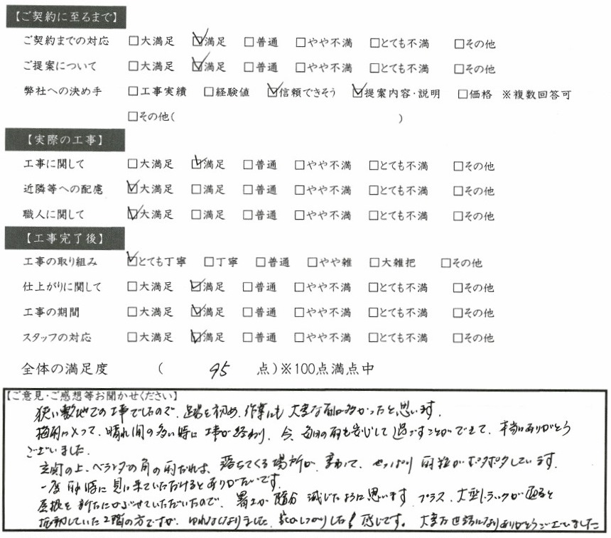 梅雨に入って、晴れ間の多い時に工事が終わり、今、毎日の雨も安心して過ごすことができて、本当にありがとうございました。