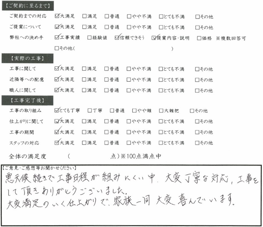 大変満足のいく仕上がり 大垣市 M様悪天候続きで工事工程が組みにくい中、大変丁寧な対応、工事をして頂きありがとうございました。