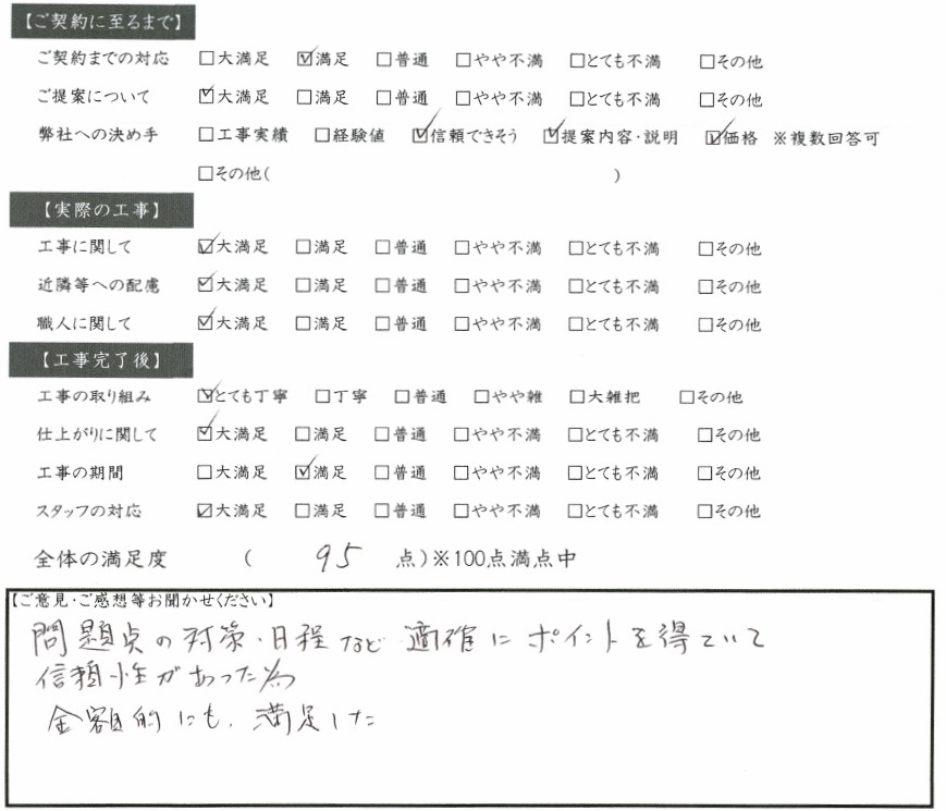 問題点の対策、日程など、適確にポイントを得ていて信頼性があった為。