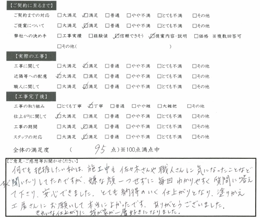 とても納得のいく仕上がりとなり、塗りかえ工房さんにお願いして本当によかったです。