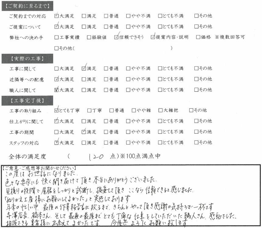 見積りの段階で屋根をしっかりと診断し、提案して頂き、ここなら信頼できると感じました。